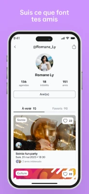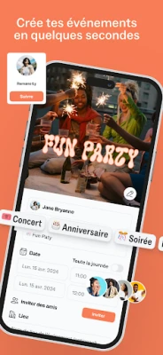 Crée et gère tes événements, qu'ils soient publics ou privés, en toute simplicité ! Invite tes amis et planifie des sorties, le tout directement depuis l'appli.