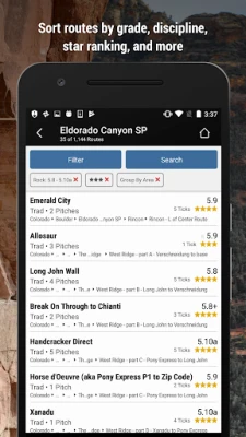 • Download route beta, photos, and topos state by state for offline use — because the best crags often have the worst reception.