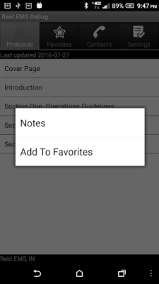 Features include: •Quick indexed lookup of protocols in a matter of seconds •Favorites tab for quick access of what's important to you •Updated shortly after new protocols are posted online making it more up-to-date than most printed protocol manuals •Customizable notes for each individual protocol entry •Always with you as long as you have your device and never fades or tears