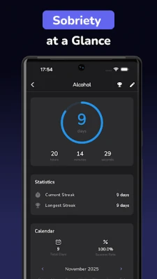 Start your sober journey today with a simple, distraction-free recovery tracker designed to help you stay clean, maintain your streak, and never lose sight of why you started.