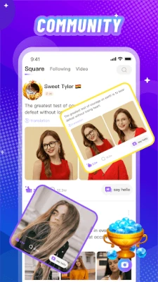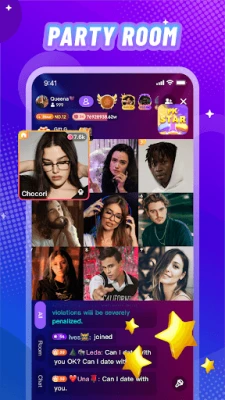 ● You can create a party room holds up to 4、6、9 participants,Singing、chatting、learn a foreign language with your friends and fans.